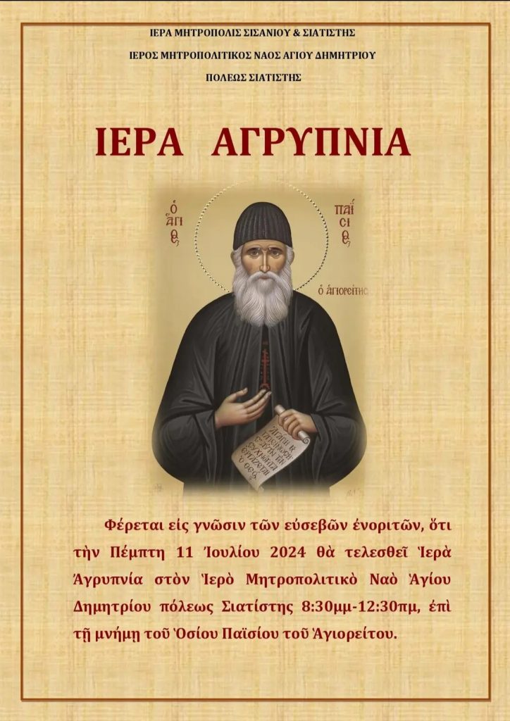 Αγρυπνία Αγίου Παϊσιου στη Σιάτιστα