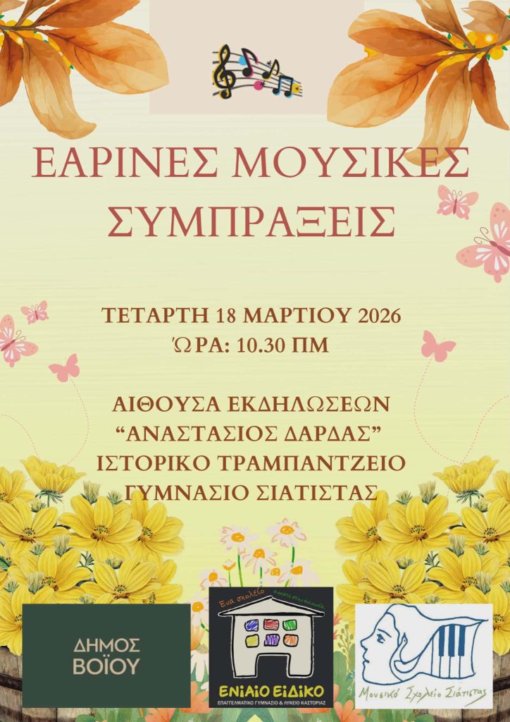 Δήμος Βοΐου: Εαρινές μουσικές συμπράξεις – Μουσικό Σχολείο Σιάτιστας